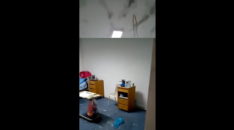 На социјалните мрежи синоќа објавија видео од Заводот за нефрологија во Струга каде се гледа како дел од пациентите седат по ходниците, и како има големо прокиснување на таванот. На подот има вода, додека