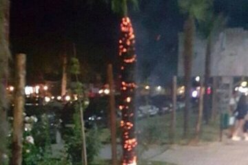 Неодговорни поединци синоќа запалиле една од палмите засадени пред Општина Струга. – Навремената реакција од страна на ТПЕ-Струга го спречи ширењето на огнот. Не е прв пат да се случува ваков вандалски чин, и