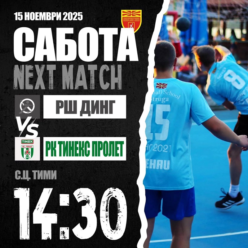 Во рамки на пионерската лига денеска се среќаваат екипата на РШ Динг Струга против тимот на РК Тинекс Пролет од Скопје. Натпреварот е закажан за 14:30 часот во спортската сала „ТИМИ“ во Струга. Strugaonline