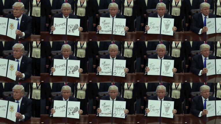 Од моментот кога Доналд Трамп потпиша една од неговите наредби и ја покажа на насобраните новинари и сниматели, вицкастите критичари на твитер го искористија моментот да направат интересни и смешни фотомонтажи. На фасциклот кој