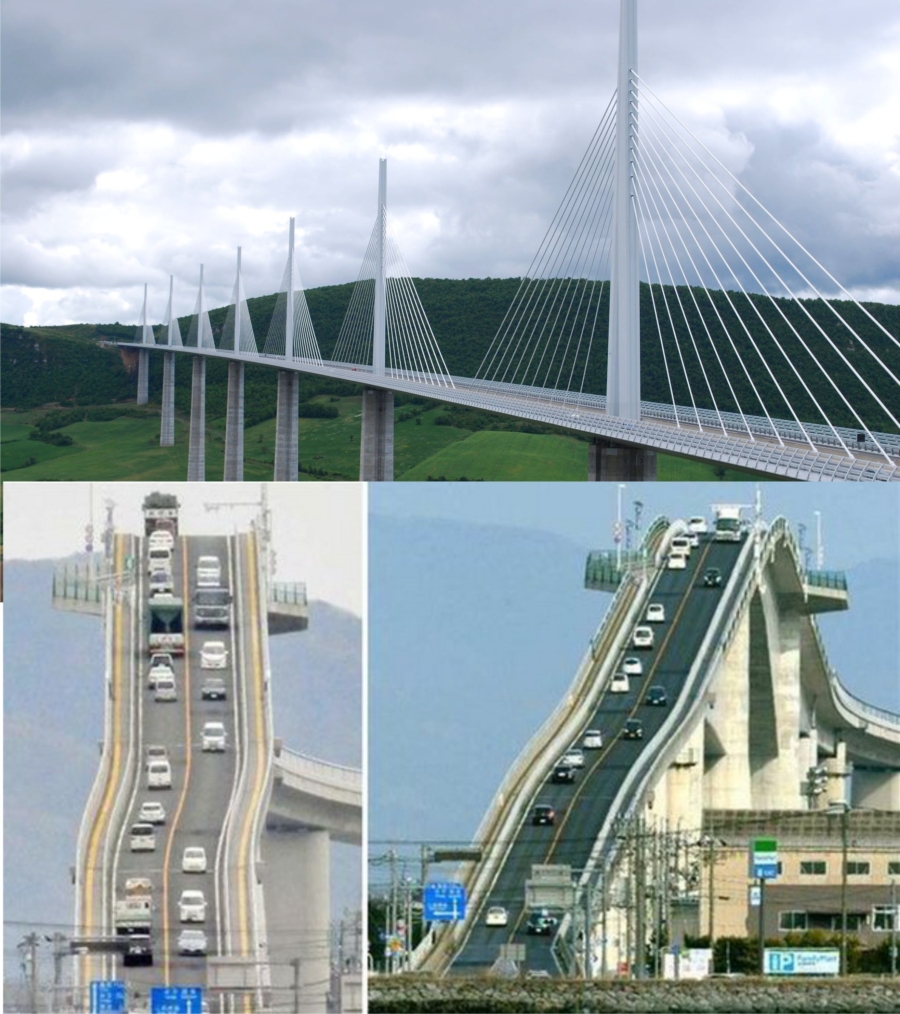 Мост Ешима Охаши, кој им задава потешкотии дури и на најискусните шофери, трет е по величина во мостовите кои нагло се кренати за да може да поминат бродовите. Бетонскиот патен мост се протега покрај