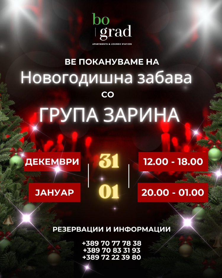 Тимот на хотел „Боград“ ве поканува да бидете дел од нивната Новогодишната забава, во добро расположение и амбиент, вкусна храна и врвна услуга.