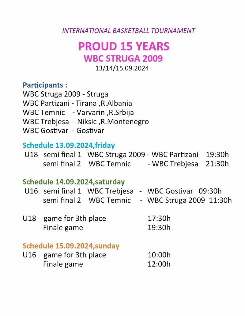 Од до 15 септември во Струга „ЖКК Струга 2009“ организира Интернационален кошаркарски турнир за кадетки и јуниорки.