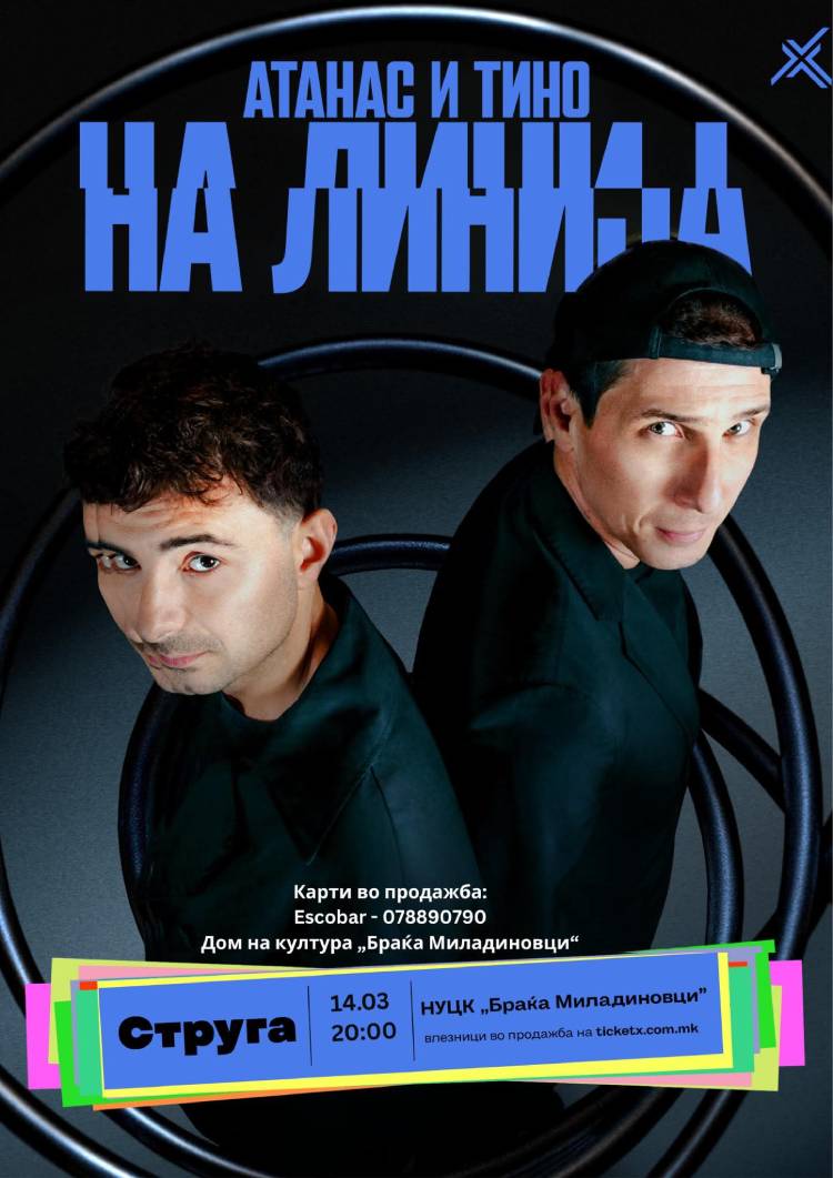 Струга повторно ќе биде домаќин на едно од најпопуларните стенд-ап шоуа во регионот. Култниот комичарски тандем Атанас Катраников и Тино Костадиновски утре (14 март) го носат своето хит-шоу „На линија“ пред струшката публика.