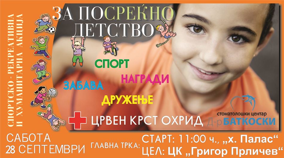 Црвен крст Охрид ја најавува традиционалната хуманитарна и спортско-рекреативна акција „За посреќно детство“, која ќе се реализира денеска, сабота, 28-ми септември 2024 година.