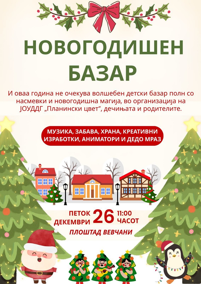Новогодишен детски базар во петок 26 декември во Вевчани