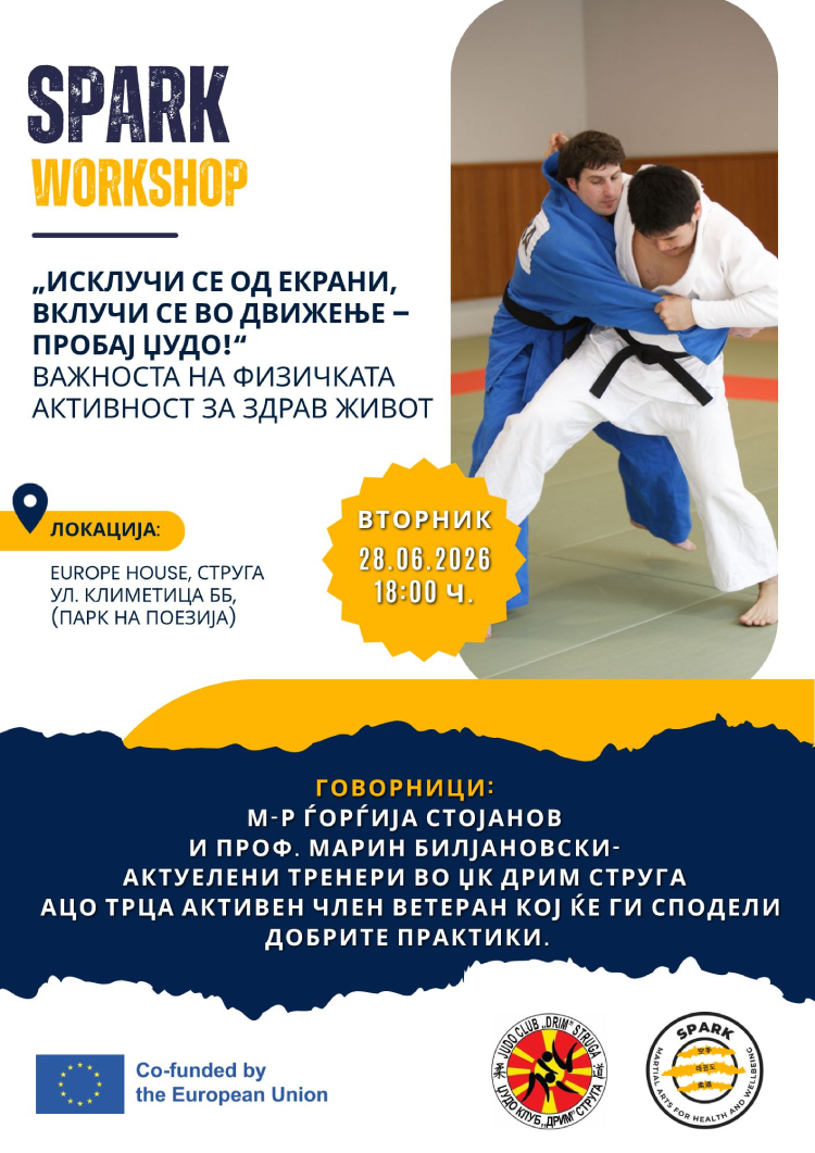 Под мотото „Исклучи се од екрани, вклучи се во движење – пробај џудо!“, учесниците ќе имаат можност да дознаат повеќе за влијанието на физичката активност врз здравјето, енергијата и менталната благосостојба. Преку практични примери и реални приказни, работилницата ќе понуди нова перспектива за значењето на движењето во секојдневниот живот.