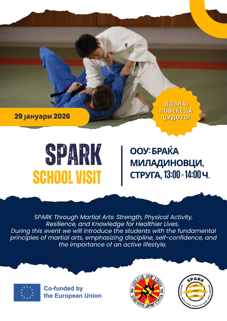 Во рамки на СПАРК проектот, утре (29 јануари 2026 година) во ООУ „Браќа Миладиновци“ во Струга ќе се одржи едукативна и спортска активност посветена на џудото како боречка вештина и животна дисциплина. Настанот ќе започне во 13:00 часот и е наменет за учениците од училиштето.