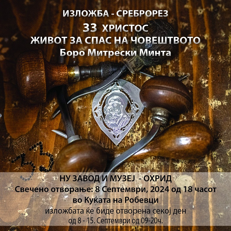 Изложбата го носи насловот „33 ХРИСТОС ЖИВОТ ЗА СПАС НА ЧОВЕШТВОТО“ 33 уметнички дела од семејството сребрен накит, годините кои ги живееше Тој на земјата до неговата маченичка смрт за спас на човештвото !